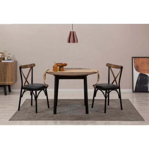 Alakítsa át étkezőjét egy stílusos és funkcionális térré az Extendable Dining Table & Chairs Set segítségével. Ez a 3 darabos szett tökéletes azok számára, akik szeretnek vendégeket fogadni vagy együtt étkezni a családdal.Elegáns dizájn az otthonábaA szett elegáns fekete és dió színei egy csipetnyi kifinomultságot adnak bármely étkezőhöz. Az asztal és a székek fából készült lábai stabil alapot biztosítanak minden étkezési igényhez.Rugalmasság és prak