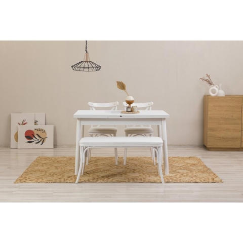 Változtassa meg étkezési élményét a kihúzható étkezőasztal és székek készlettel!Dobja fel étkezőhelyét elegáns és funkcionális étkezőgarnitúránkkal. A legnagyobb precizitással készült készletet úgy terveztük, hogy fokozza otthona szépségét, miközben maximális kényelmet és komfortot biztosít. Páratlan minőség és tartósság100% melaminbevonatú forgácslapból készült, étkezőgarnitúránkat tartósan építjük. A 18 mm-es vastagság biztosítja a robu