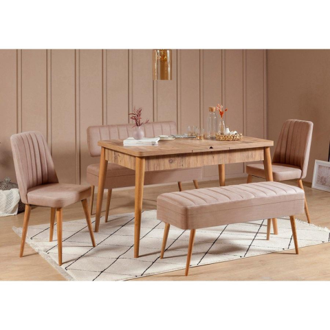 Hozzon létre maradandó emlékeket a kihúzható étkezőasztal és székek készlettelTegyen minden étkezést különleges eseménnyé a gyönyörű kihúzható étkezőasztal és székek készlettel. A szeretettel és a részletekre való odafigyeléssel készített készletet úgy terveztük, hogy maradandó emlékeket teremtsen szeretteivel. Elegáns és sokoldalú kialakításÉtkezőasztalunk elegáns és modern dizájnnal rendelkezik, amely tökéletesen illik bármely kortárs otthonba