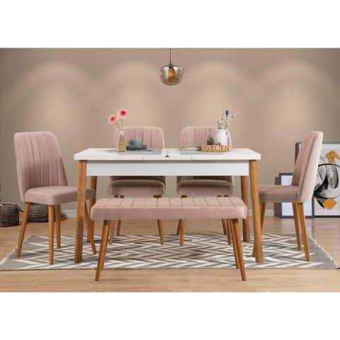 Tapasztalja meg az elegancia és a funkcionalitás tökéletes keverékét a kihúzható étkezőasztal és székek szettünkkel Engedje át magát a skandináv design szépségének a kiváló kihúzható étkezőasztal és székek készletünkkel. A legnagyobb precizitással készült készlet biztosan feldobja étkezési élményét, és egy csipetnyi kifinomultságot kölcsönöz otthonának. Páratlan minőség és tartósságA 18 mm vastagságú, 100% melaminbevonatú forgácslapból kés