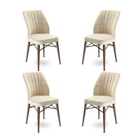 Alakítsa át életterét ezzel a lenyűgöző 4 darabos szék szettel, amelyet úgy terveztek, hogy stílust és kényelmet hozzon otthonába. 100%-ban fém kerettel és luxus Babyface szövettel készült, ezek a székek nemcsak tartósak, hanem rendkívül puhák is tapintásra.Elegáns dizájnA krém és barna színkombináció egy csipetnyi kifinomultságot ad bármely helyiséghez, míg a fa lábak szilárd alapot biztosítanak évekig tartó használatra. Ezeknek a székeknek a letisztult