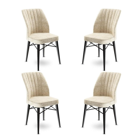 Alakítsa át életterét lenyűgöző Szék Szettünkkel, amelyet úgy terveztek, hogy stílust és kényelmet hozzon otthonába. A 100%-ban fém kerettel és luxus Babyface szövettel készült, ez a 4 székből álló szett tökéletes kiegészítője bármilyen modern otthoni dekorációnak.Elegáns DizájnEzeknek a székeknek a letisztult és kifinomult dizájnja azonnal feldobja bármelyik szoba megjelenését. A krém és fekete színek kombinációja eleganciát kölcsönöz, míg a fa l