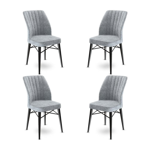 Alakítsa át életterét lenyűgöző Szék Szettünkkel, amelyet úgy terveztek, hogy stílust és kényelmet hozzon otthonába. 100%-os fémkerettel és luxus Babyface szövettel készült, ez a 4 székből álló szett tökéletes kiegészítője bármely modern otthonnak.Elegáns DizájnEzeknek a székeknek a letisztult és modern dizájnja azonnal feldobja bármely helyiség megjelenését. A szürke és fekete színek kombinációja egy csipetnyi kifinomultságot ad, míg a fa lábak tart