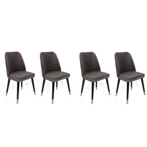 Alakítsa át életterét ezzel a lenyűgöző 4 darabos szék szettel, amely az eleganciát és a kifinomultságot sugározza. A karcsú fémkeret és a luxus bársonyszövet ülések azonnal feldobják bármely helyiség stílusát.Elegáns DizájnA gyertyánfa lábak és az antracit, fekete és arany színkombináció modern és stílusos megjelenést kölcsönöz, amely lenyűgözi vendégeit és hangsúlyozza otthona egyediségét.Kényelem és TartósságA 40,5 cm-es ülésmagassággal és