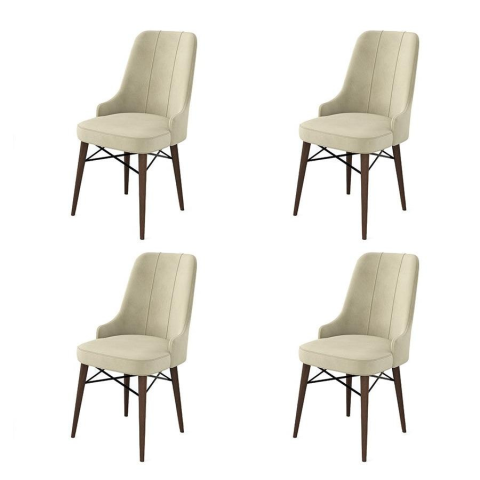 Alakítsa át életterét lenyűgöző Szék Szettünkkel, amelyet úgy terveztek, hogy stílust és kényelmet hozzon otthonába. A 100%-ban fém kerettel és luxus Babyface szövettel készült négy szék tökéletes kiegészítője bármely helyiségnek.Elegáns DizájnEzeknek a székeknek a letisztult és modern dizájnja azonnal feldobja a tér megjelenését. A krém és barna színek egy csipetnyi kifinomultságot adnak, míg a fa lábak stabil és tartós alapot biztosítanak.Maximális