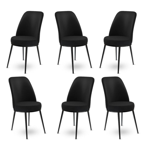 Alakítsa át étkezőjét egy stílusos és hívogató térséggé 6 darabos szék szettünkkel. A masszív 100%-os fémkeret és a luxus Babyface szövet használatával készült székek nemcsak tartósak, hanem rendkívül kényelmesek is. A letisztult fekete szín eleganciát kölcsönöz bármely helyiségnek, így tökéletes kiegészítője otthonának.Elegáns dizájnEzeknek a székeknek a letisztult és modern dizájnja azonnal feldobja étkezője megjelenését. A fém lábak stabilit