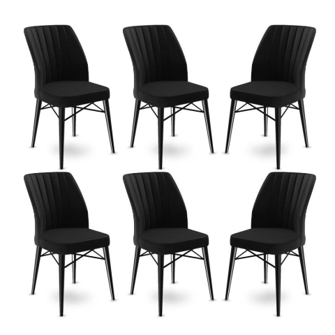 Alakítsa át étkezőjét egy stílusos és hívogató hellyé 6 darabos szék szettünkkel. A székek 100%-ban fém kerettel és luxus Babyface szövettel készültek, így nemcsak tartósak, hanem rendkívül kényelmesek is.Elegáns DizájnA székek elegáns fekete színe egy csipetnyi kifinomultságot ad bármely étkezőhelyiséghez, míg a fa lábak klasszikus, mégis modern megjelenést biztosítanak. A háttámlához használt 18 DNS hab és a üléshez használt 22 DNS hab maximális k