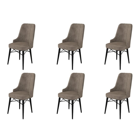 Alakítsa át étkezőjét egy stílusos és hívogató hellyé 6 darabos szék szettünkkel. A székek 100%-ban fém kerettel és luxus Babyface szövettel készültek, így nemcsak tartósak, hanem rendkívül kényelmesek is.Elegáns DizájnEzeknek a székeknek a letisztult dizájnja azonnal feldobja étkezője megjelenését. A cappuccino és fekete színek kombinációja modern érintést ad bármilyen dekorációnak, míg a fa lábak klasszikus és időtlen vonzerőt biztosítanak.Kényelm