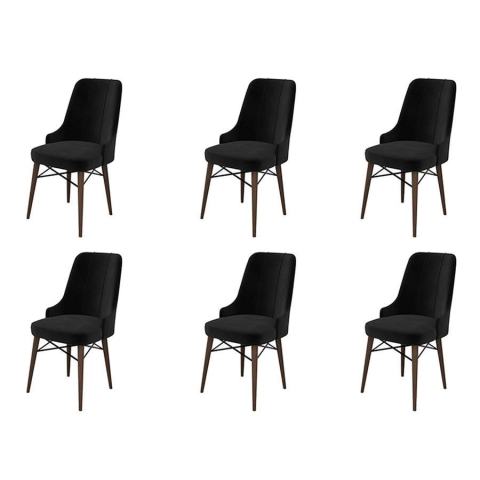 Alakítsa át étkezőjét egy stílusos és hívogató térséggé 6 darabos szék szettünkkel. A székek 100%-ban fém kerettel és luxus Babyface szövettel készültek, így nemcsak tartósak, hanem rendkívül kényelmesek is.Elegáns DizájnEzeknek a székeknek a letisztult dizájnja azonnal feldobja étkezője megjelenését. A fekete és barna színkombináció egy csipetnyi kifinomultságot ad, míg a fa lábak meleg és hívogató érzést biztosítanak.Kényelmes ÜlésA 18 DNS hab a