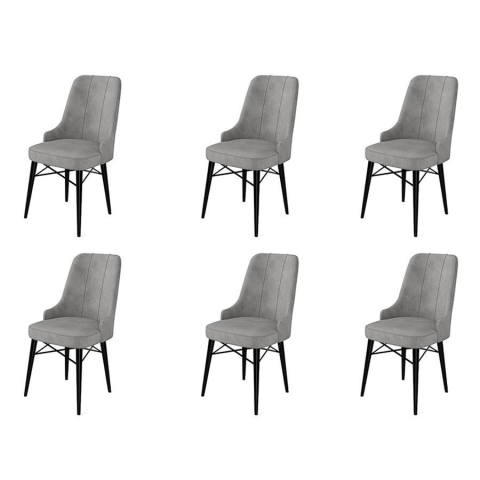 Alakítsa át étkezőjét egy stílusos és hívogató hellyé 6 darabos szék szettünkkel. A székek 100%-ban fém kerettel és luxus Babyface szövettel készültek, így nemcsak tartósak, hanem rendkívül kényelmesek is.Elegáns dizájnEzeknek a székeknek a letisztult dizájnja azonnal feldobja étkezője megjelenését. A szürke és fekete színek kombinációja modern érintést ad, amely lenyűgözi vendégeit.Kényelmes ülésA 18 DNS hab a háttámlához és a 22 DNS hab az ülés