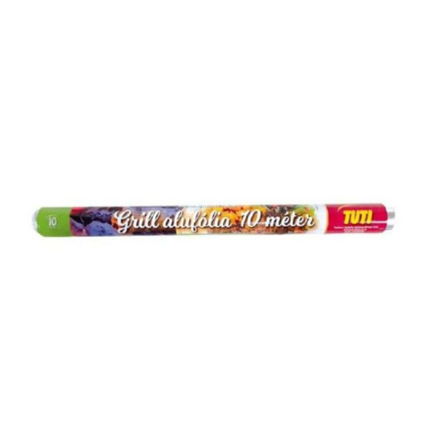 Alufólia, grill, 40 cm x 10 m TUTI - KHT953 - Háztartási fóliák, tasakok - Alkalmas, faszenes és elektromos grillekhez, hús, hal, zöldség, gyümölcs grillezéséhez, grillrácson (faszenes és parázsfűtéssel). - megőrzi az ételek ízét, megtartja az aromákat