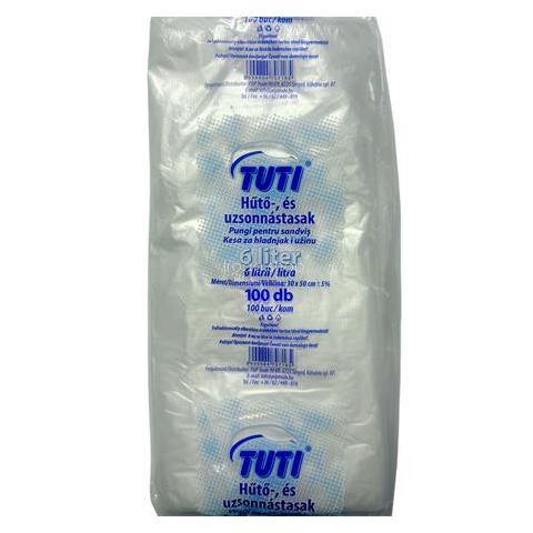 Hűtő- és uzsonnástasak, 6 l, 100 db, 30 x 50 cm, 9 µ, TUTI Hűtő- és uzsonnástasak - méret: 30 x 50 cm - űrtartalom: 6 liter - kiszerelés: 100 db/tömb - vastagság: 9 micron