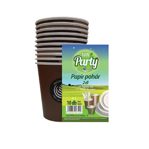 Papírpohár, 2 dl, 10 db, TUTI Party Az eldobható papírpohár kávézók, büfék, rendezvények stb. nélkülözhetetlen kelléke, de egyaránt alkalmas otthoni használatra is. -egyszer használatos -űrtartalom: 2 dl -használható szülinapi zsúron, grillpartyn stb.