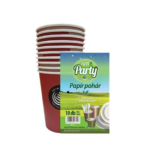 Papírpohár, 3 dl, 10 db, TUTI Party Papírpohár űrtartalom: 3 dl méret: 6 × 18 × 5 cm kiszerelés: 10 db/csomag