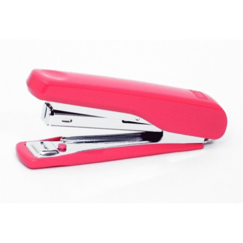 Krómacél testű, színes műanyag borítású tűzőgép, dupla nagyságú kapocstárral, beépített kapocskiszedővel, és könnyen kezelhető töltési mechanikával. A kapocstár oldalán kialakított nyíláson látható a kapocs mennyiség.Szétnyitott állapotban alkalmas a hajl