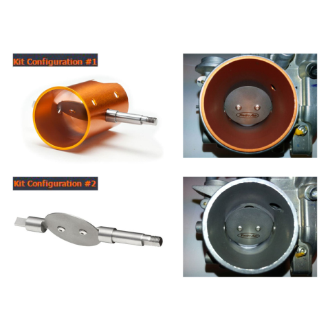 A Twin Air powerflow throttle body kit az alábbi elemeket tartalmazza:- Egy narancssárga beömlő csövet- Egy tűt- Két gázadó szelepet (kis és nagy átmérővel)- Két csavartA készlet javítja a motor sebességét a konfigurációtól függően.- 1. konfiguráció: növeli a teljesítményt és a gyorsulást alacsony és közepes fordulatszámon.- 2. konfiguráció: növeli a teljesítményt magas fordulatszámon. (a narancssárga beömlő cső nélkül)