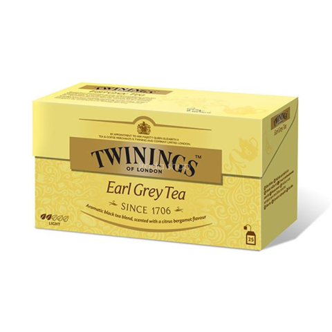 Fekete tea, 25x2 g, TWININGS Earl grey A legkiválóbb kínai tea világszerte ismert keveréke, értékes bergamot aromával ízesítve. Klasszikus íz, filteres kiszerelésben. Eredeti fekete tea, az egészséges élethez hozzájárulva. Kiszerelés: 25*2 g