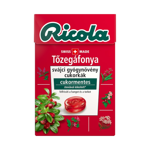 Ricola Tőzegáfonya cukormentes, svájci gyógynövény cukorkák édesítőszerekkel.