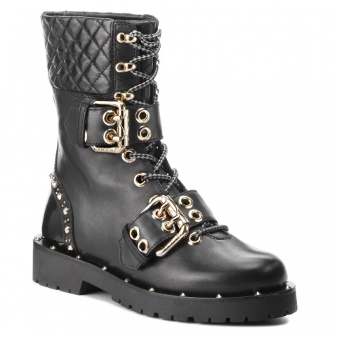 Márka: TwinsetTípus: bakancs, csizmaNem: nőiFelsőrész: 100% bőrTalpbetét: bőrBelső rész: bőrTalp: szintetikus anyagTalp vastagság: 2.5 cmSzin: feketeRészletek: aranyozott fémcsatok és szegecsekMinden termék ...