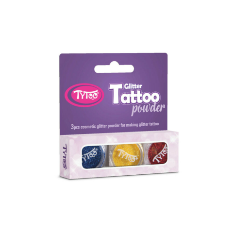 1 kép TyToo Csillámpor szett 3 x 2,5 ml Tengerkék, Citromsárga, Piros