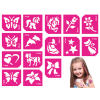 Sablon szett - lányoknak - 15 db-os A sablon szett 15 db, 3-8 éves lányoknak készült mintát tartalmaz, melyeket használhat csillámtetováláshoz, vagy egyéb testfestéshez. Olyan slágermintákat kap egy csomagban, mint a cica, pillangó vagy póniló, melyek biz