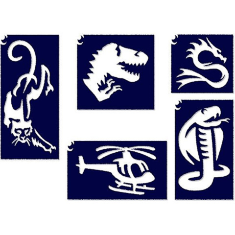 A fiúk is készíthetnek maguknak látványos csillámtetoválást, melyhez ezeket a kis sablon mintákat használhatják alapul. Egyszerűen csak fel kell ragasztani a tetoválás alapot a bőrfelületre, majd arra nekik tetsző csillámot szórni. A megtapadó színekkel azonnal kirajzolódik majd a dinó, helikopter, gepárd, kobra vagy akár sárkány formája is, ami remekül mutat