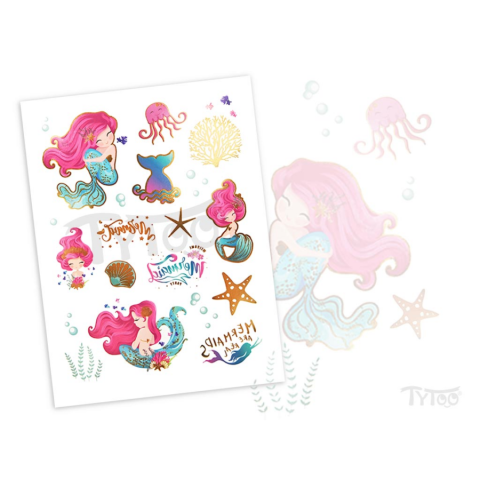 Fedezd fel a csodálatos víz alatti világot a Hableányos tetoválással, amelyet arannyal díszítettünk, hogy csillogó hatást nyújtson! Ezek az ideiglenes tetoválás matricák magas minőségűek, így hosszabb ideig, akár napokig is megőrzik élénk színüket és részletgazdagságukat. Merülj el a tenger mélyén, és engedd, hogy a hableányok és más vízi állatok és növények vará