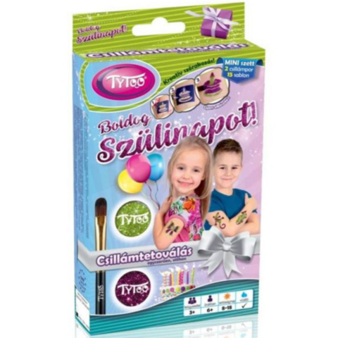 Ebben a vagány csillámtetováló szettben a fiús és a lányos sablonok egyaránt megtalálhatóak, így remek választás születésnapi ajándékként. A használata nem bonyolult, hiszen először is választanod kell egy sablont, és ragaszd fel a megtisztított bőrre! Kend át ragasztóval a bőrt, azután óvatosan húzd le a sablont, és már kezdheted is a csillámporos díszítést! A szettben egy
