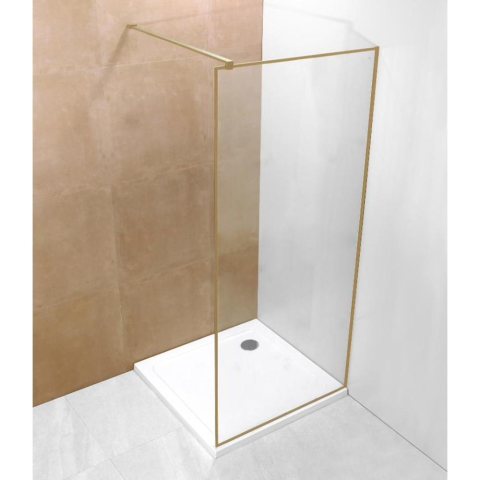 Goldy zuhanyfal aranyszínű kerettel, A-20P-3, 80x190 cm - Elegáns, divatos és letisztult vonalú, aranyszínű profillal és tartórudakkal szerelhető zuhanyfal, amely könnyen tisztán tartható és remekül illik a modern vagy glamúros fürdőszobákba is. Stabil, 6 mm vastag üveg elemekkel készül. A csomag a zuhanytálcát nem tartalmazza. Felszerelése nem igényel különösebb szakértelmet. Több változatban kapható.
