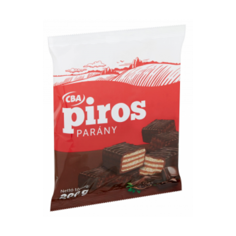 Piros Parány 200 g : Kakaós étbevonómasszával mártott, kakaós krémmel (45%) töltött ostya