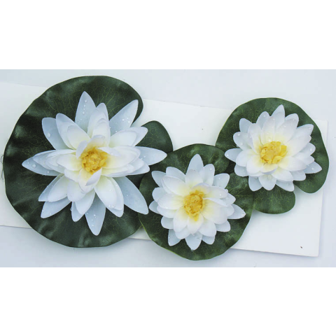 Élethű, kertbe és tavakba használható virágdekoráció, ami látványával feldobja és élettel ruházza fel a környezetét. Fehér színben kapható,3 db-os tavirózsa szett. Méretei: 10/8/8 cm.