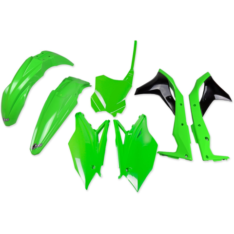 Az UFO műanyagok minőségükről és terephasználat során mutatott ellenálló képességükről híresek. Gyári (OEM) kialakításúak, könnyen felszerelhetők, és a mai MXGP élcsapatok, valamint korábbi világbajnokok is használják őket.Gyári (OEM) típusA szett tartalma:Hátsó sárvédőElső sárvédőHűtőburkolatokOldalidomokElső idomUV-, ütés- és csavarodásálló fröccsöntött műanyagból készül