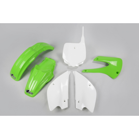 1 kép UFO műanyag szett gyári színű zöld/fehér Kawasaki KX80 UFO