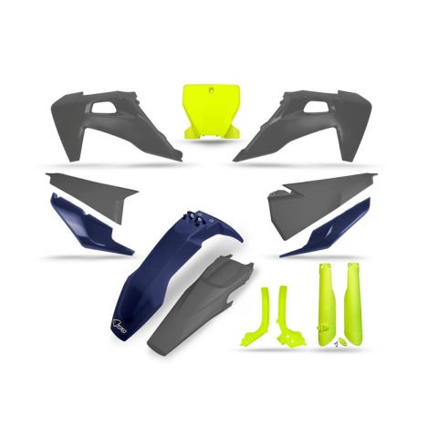 1 kép UFO Plastics Kit Neon Sárga/Kék/Szürke - Husqvarna műanyag szett UFO