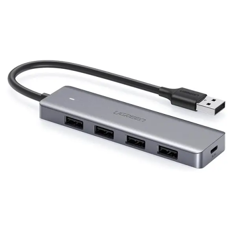 USB Hub - külső levehető és beépített USB tápkábellel, csatlakozás USB 3.2 Gen 1 (3.0) segítségével, 4× USB–A 3.2 Gen 1 (3.0), anyaga műanyag, ezüst szín, méretei 3 × 10,4 × 1 cm (ma × szé × mé), csatlakozó kábel a csomagban A számítógéped nem rendelkezik elegendő konnektorral? A neves Ugreen által létrehozott USB elosztó kiszélesíti a csatlakoztatási lehetőségeket és ezáltal a munkát is effektívebbé teszi. Funkcionálásár