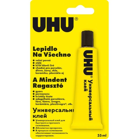 Általános használatra alkalmas, kristály tisztaságú ragasztó, amely gyors és tartós ragasztást biztosít. Ideális a legtöbb anyag, mint pl. fa, fém, porcelán, üveg, filc, bőr, kerámia, plexi, parafa, szövet, karton, papír ragasztásához a ház körül, barkácsoláshoz vagy kreatív munkákhoz. Styropor ragasztására nem alkalmas!