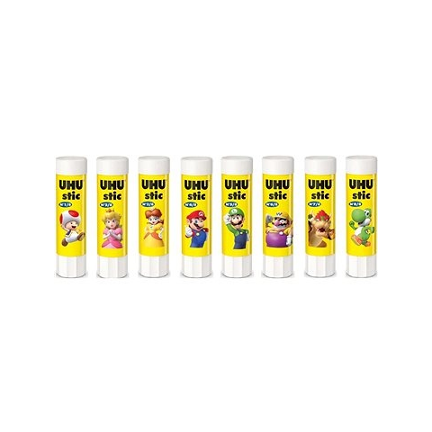 Ragasztó stift - speciális, merev kötést létesít, alkalmas papír rögzítésére a legkülönfélébb felületekhez UHU STIC glue with a motif of Super Maria and his friends is an ideal helper for all schoolchildren. The glue is very easy to apply and slides smoothly on the surface . Thanks to the simple applic
