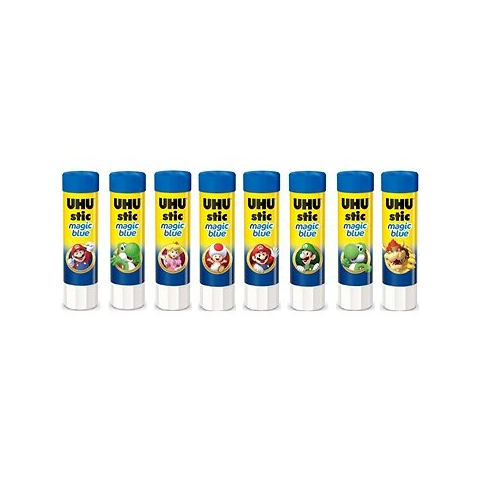 Ragasztó stift - speciális, merev kötést létesít, alkalmas papír rögzítésére a legkülönfélébb felületekhez UHU STIC MAGIC glue with the motif of Super Maria and his friends is an ideal helper for all schoolchildren. The glue has a special ability to change colour. When applied, the adhesive is coloured