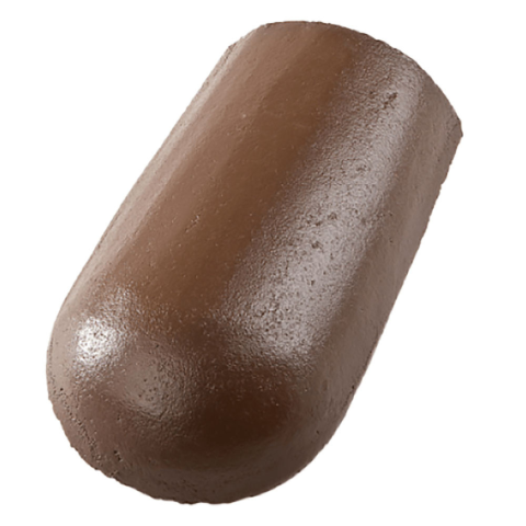 Az újHÁZ Toscana Lux Matt beton kezdő kúpcserép egy barna színű tetőelem, amelyet a tetőgerinc kezdőpontjának esztétikus és vízzáró lezárására használnak. A termék rögzítőkapoccsal együtt kerül forgalomba, biztosítva a stabil és tartós rögzítést. Az új