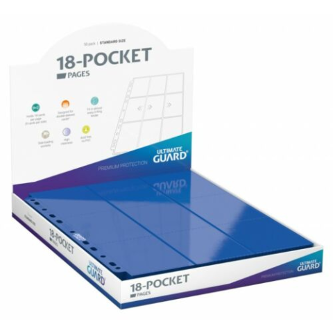 18db kártya számára biztosít helyet. Ideális választás 64mmx89mm sportkártyák, játékkártyák számára. Magas minőségű, két-oldalas lapok, melyek mind két oldalán 9-9 zseb található. A zsebek egy műanyag kék lapon találhatók, így a kártyák hátulja nem látszi