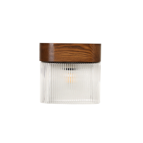 A FLUMINA lámpatestet természetes fa és bordázott üveg kombinációjából alkották meg – ez a kombináció vizuális könnyedséget és texturális megkülönböztetést egyaránt biztosít. Az üvegbúra függőleges barázdáinak ritmusa finoman szórja a fényt, finoman áthat..