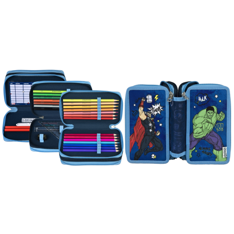 1 kép Undercover Gmbh Scooli háromszintes tolltartó (EberhardFaber írószerekkel töltött), Avengers