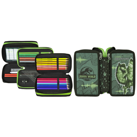 1 kép Undercover Gmbh Scooli háromszintes tolltartó (EberhardFaber írószerekkel töltött), Jurassic World