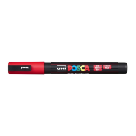 Dekormarker, 0,9-1,3 mm, UNI "Posca PC-3M", piros - TUPC3MP - Speciális markerek - - az első titánoxidos nagyfedőképességű, vízbázisú marker