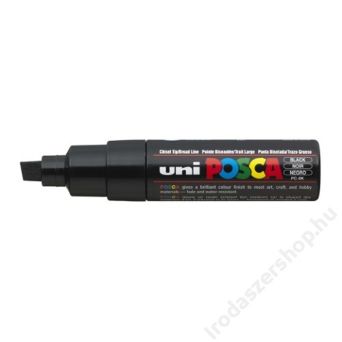 A Dekormarker, 8 mm, vágott, UNI Posca PC-8K, fekete (TUPC8KF) Dekorálásra fel! -az első titánoxidos nagyfedőképességű, vízbázisú marker -tintája száradás után vízálló, vegyileg nem aktív, tovább feliratozható felületet képez -alkosson egyéniségének megf