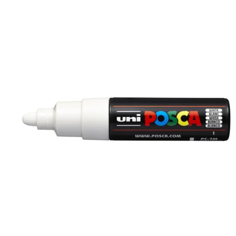 Dekormarker 4,5-5,5mm, Uni Posca PC-7M fehér Posca egy rendkívül sokoldalú dekormarker. Írásra, rajzolásra, festésre, jelölésre, díszítésre, hobbi tevékenységekhez használható. Műanyagtól kezdve a fém, textil, fa, bőr felületeken is alkalmazható, de az