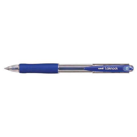 Golyóstoll, 0,3 mm, nyomógombos, UNI SN-100 Laknock, kék - átlátszó tolltest, a tinta fogyása jól követhető - a tinta színével megegyező tollvég és fogórész - ergonomikus, gumírozott fogórész - nyomógombos tollszerkezet - könnyű, folyamatos írás - hoss