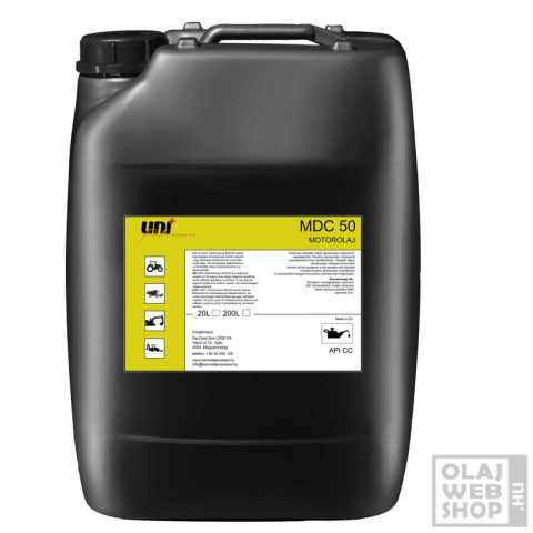 pénztárcabarát egyfokozatú SAE50 motorolaj Az Uni+Performance MDC 50 egy előnyös kenési tulajdonságokkal rendelkező, egyfokozatú motorolaj. Elsősorban régi dízelüzemű gépjárművekhez és erőgépekhez alkalmazható. Gyártói jóváhagyás: API CB