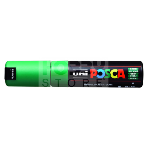 UNI POSCA PC-7M ZÖLD színű dekormarker-filctoll 41950U Kiváló minőségű, erős heggyel rendelkező akril dekormarker. Használható szinte bármilyen felületen legyen az fa, fém, papír, üveg, textil, kő, műanyag.. Az Uni Posca filctollak különleges finomságú a