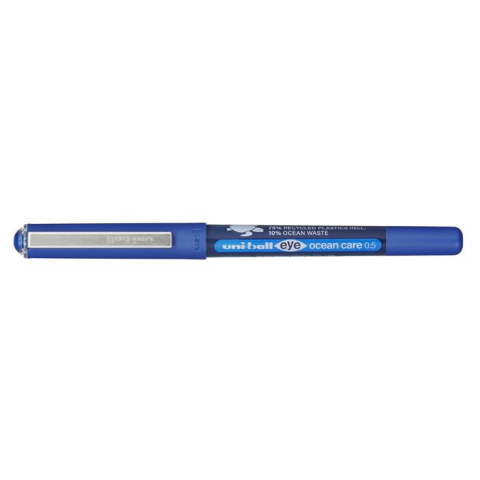 Rollertoll, 0,3 mm, UNI UB-150 Ocean Care, kék Fedezze fel az új Uni Eye Ocean Care roller tollat. A környezetbarát toll újrahasznosított műanyagból készül, amelynek egy része közvetlenül az óceánból származik. A minőségi görgő egyedülálló uni-flow ren